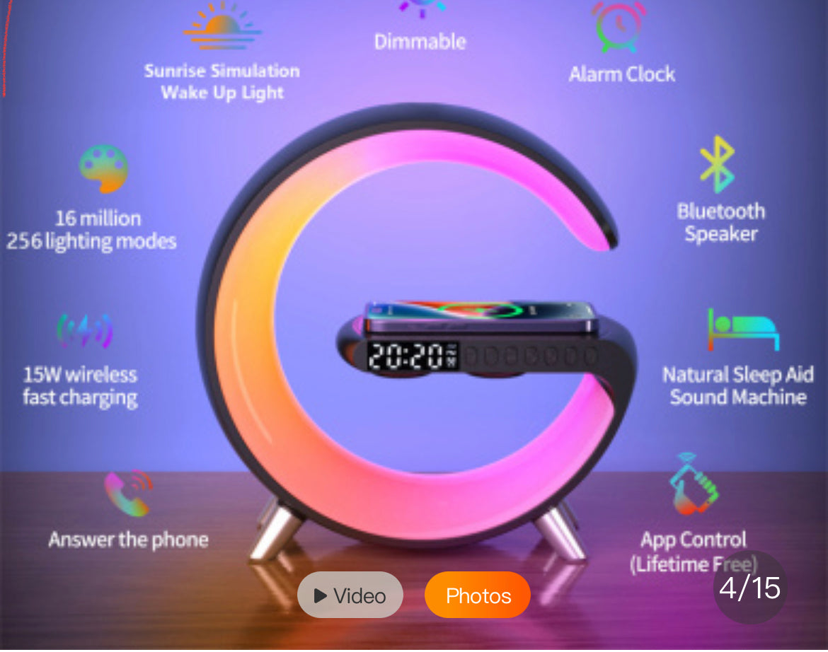 Intelligent Atmosphere Lamp BluetoothSpeaker Wireless Charger Bedside LampSunrise Wake-up Lamp Polar Lamp Alarm Clock